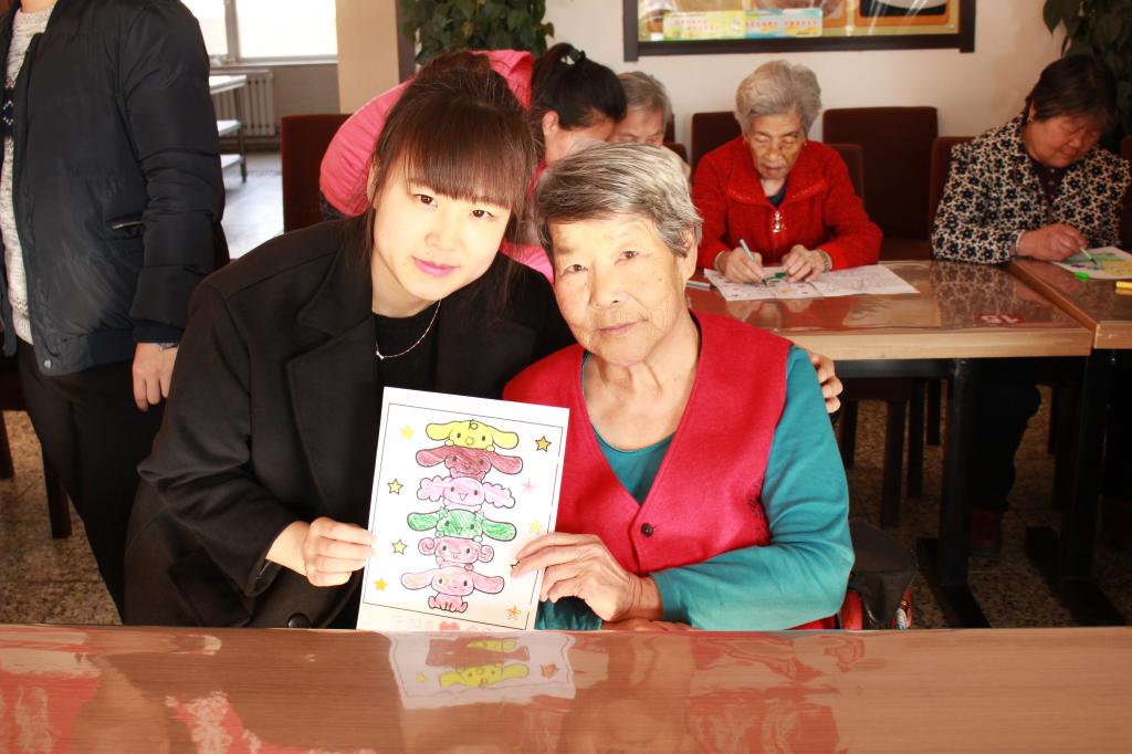 之后其中的一位一个奶奶也唱了一首歌,唱的很棒,丝毫没有年迈的迹象。同学们又和老人一起画了图画,并且朗诵了《学会感恩》。