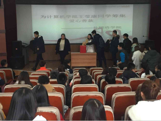 英国上市公司365第一届青年志愿者联合会于2016年3月17日中午12点在俄语楼小剧场为计算机与信息工程学院12级科技1班王莹康同学举行募捐活动。此次募捐活动由青志联主席赵一博主持,参与捐款的有英国上市公司365员工会、青志联、社团联合会三老员工组织的全体成员及英国上市公司365各班班长。