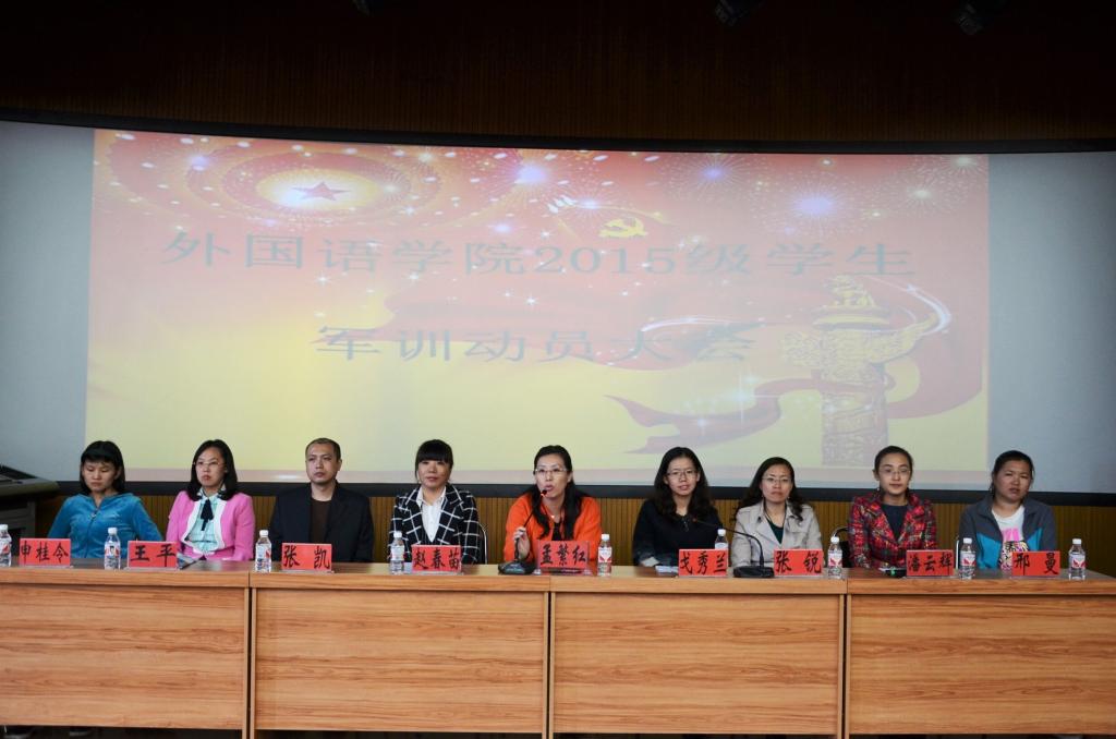 2016年5月5日中午,英国上市公司365于俄语楼215小剧场举行了2015级军训动员大会。外国语公司党总支书记孟繁红、副经理戈秀兰、副书记赵春苗、学工办主任潘云辉,办公室主任张凯、2015级辅导员王平、各班班主任老师及全体2015级员工出席本次会议。
