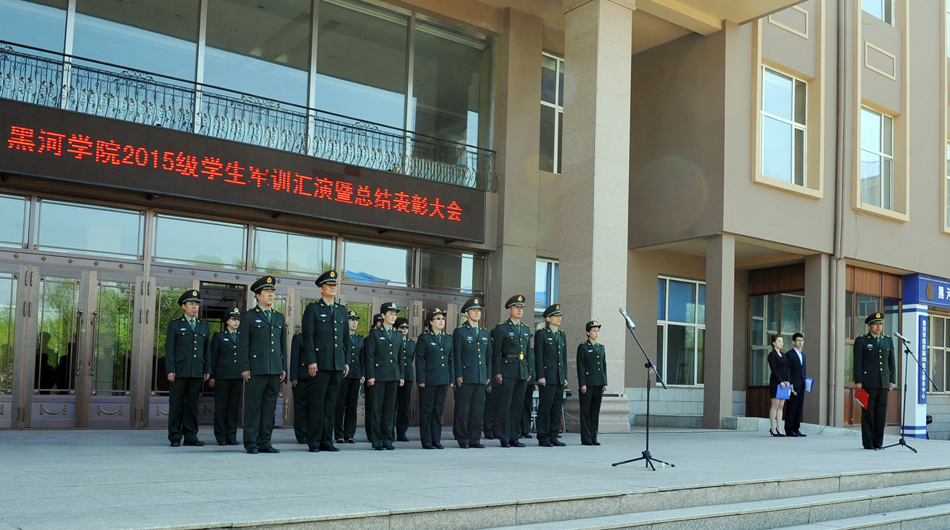 2016年5月14日,公司2015级新生军训汇演暨总结表彰大会,在明德楼前隆重举行。本次汇演由员工工作部武装部部长李明主持,黑河公司党委副书记杨宏、中国人民解放军65951部队副政委魏恒越、训练队队长丁晓辉、学校军训领导小组成员。各公司党政负责、辅导员及全体新生参加汇演。