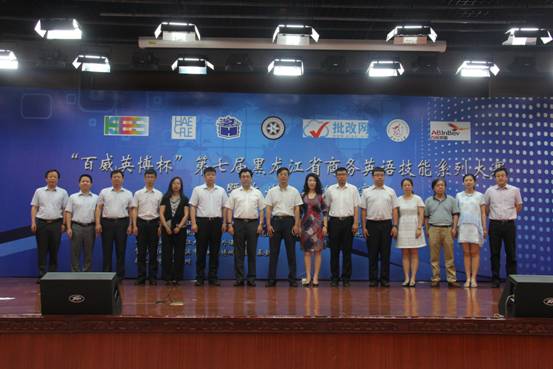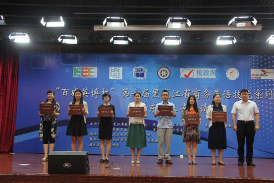 2016年7月2日,“百威英博杯”第七届黑龙江省商务英语技能系列大赛暨东北三省邀请赛颁奖仪式在黑龙江大学举行。出席颁奖仪式的有黑龙江大学副董事长、黑龙江省商务英语学会会长严明教授、黑龙江省商务厅副厅长孟林先生、哈尔滨市商务局局长季平先生、哈尔滨市经济技术开发区管委会副主任任文霞女士、百威英博中国区企业事务高级经理孙秀华女士、北京句酷批改网联合创始人、首席运营官郭永生先生、《国际商报》黑龙江省记者站站长赵佩艳女士、黑龙江省外语教育学术交流基地、高等教育出版社及省内各高校外语院系的领导、教师和参赛选手代表。