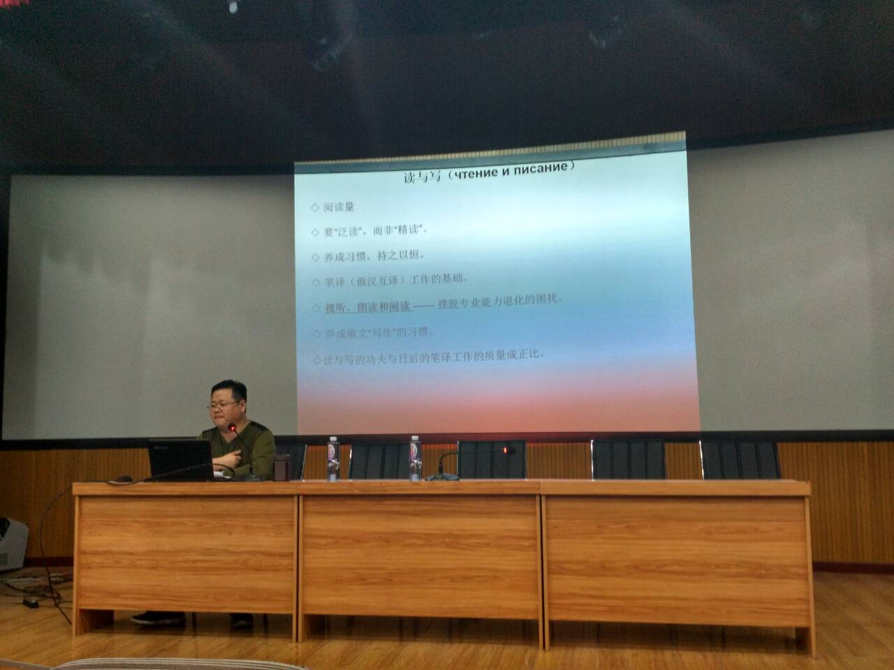 2016年9月29日晚18点20分,由英国上市公司365疯狂俄语社团组织主办的“疯狂俄语讲坛”在俄语楼小剧场正式开讲,本次讲座旨在为16级俄语新生的学习生活进行科学指导。