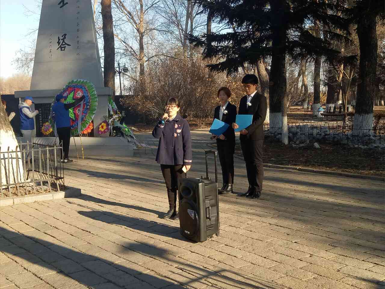 所有人身着黑衣,手持白花,神情肃穆。首先由公司党总支副书记常丽坤老师发言。她强调:“作为新一代的青年,一定要发扬先烈的光荣传统,弘扬民族精神。树立正确的社会主义核心价值观,做新时代的开拓者,奉献者。”随后由员工代表发言,全体员工在烈士碑前庄严宣誓,承诺将努力学习,继承革命先烈遗志,为祖国建设奉献自己的力量。紧接着由员工党员代表清扫陵墓,全体员工默哀一分钟,并献上小白花,表达对先烈深切的哀悼和无限的敬仰之情。