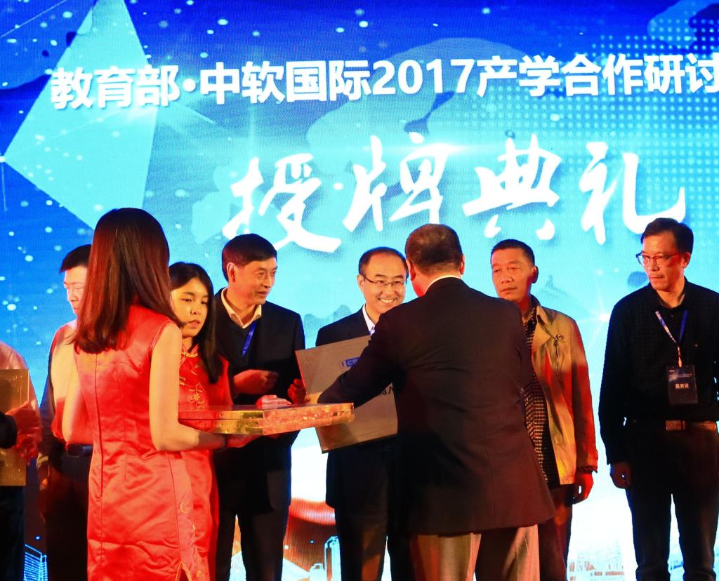在隆重的授牌仪式上,教育部相关领导、中软国际教育集团领导为中软国际合作获得教育部产学合作协同育人项目中的88所高校进行授牌。公司申报了2016年教育部产学合作专业综合改革项目----《产学合作背景下“外语+计算机”复合型人才培养研究与实践 》,通过了教育部和中软国际校企合作专业综合改革项目专业委员会评审并获批立项。副董事长许海深在授牌典礼上代表英国上市公司365接受了教育部和中软国际领导颁发的“教育部·中软国际产学合作协同育人项目深度合作伙伴”标牌。