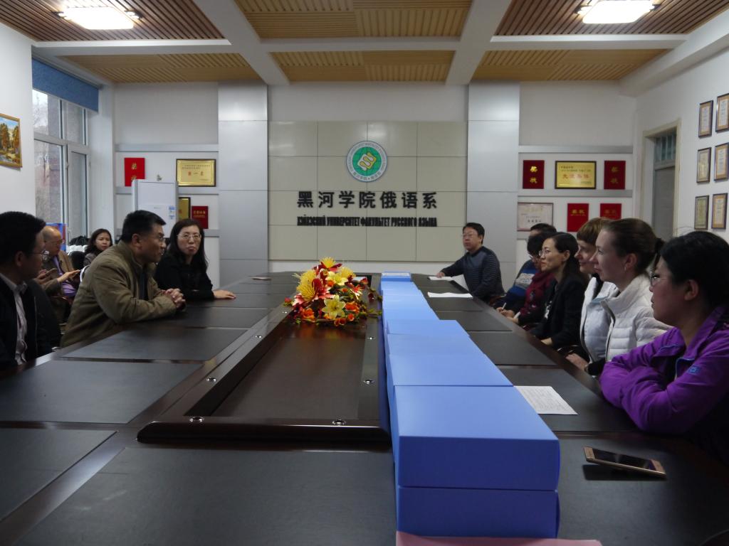 座谈会上汪教授和大家分享了黄金时代的俄罗斯文学,同时就俄罗斯文学方面汪教授也表达一些自己的看法,并同各位教师进行了交流和讨论。汪教授讲:“诗歌是极富艺术性的文学体裁,是语言艺术的最高层次。俄罗斯诗歌作品崇高的思想性和完美的艺术性使其具有世界性的重大影响。诗人们在作品中表达着对自由、对生活的热爱,以及光明必能战胜黑暗、理智必能战胜偏见的坚定信仰,他们秉承“用语言把人们的心灵燃亮”的崇高使命和伟大抱负,深深的感动着一代又一代的人。这就是俄罗斯诗歌的魅力。”同学们也就俄罗斯文学方面的问题向汪教授提问,汪教授一一做了详细解答。