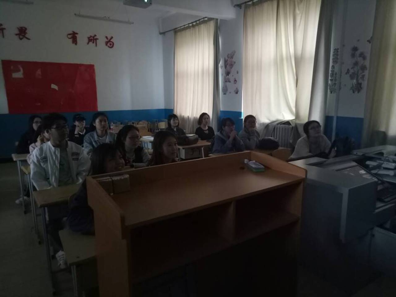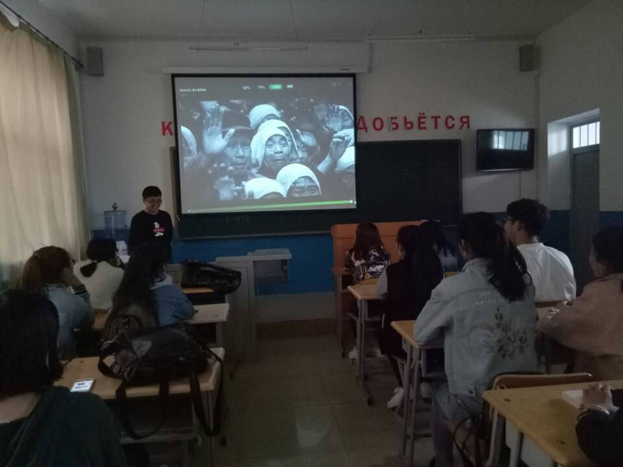 为进一步深入贯彻落实周恩来精神,5月8号下午,2015级英本三班全体成员在俄语楼209集体观看了电影《周恩来的四个昼夜》。本次观看工作由班长韩宏帅主持。