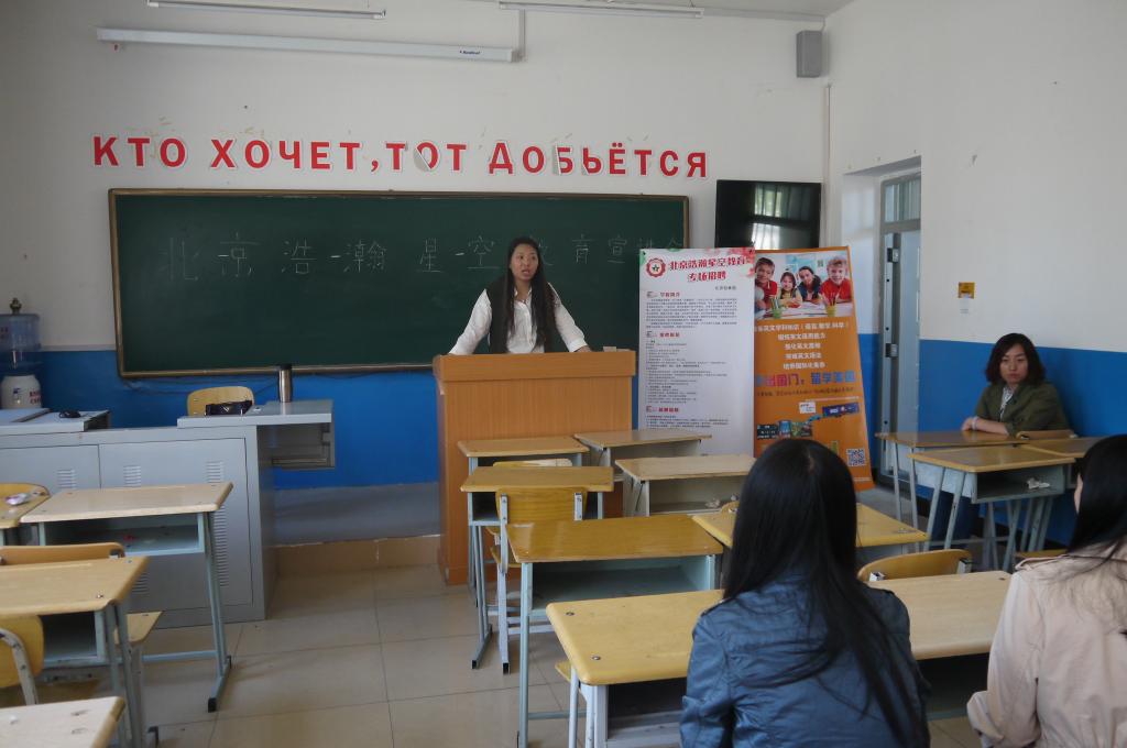 2017年5月15日中午12时,“北京浩瀚星空教育”宣讲会在公司俄语楼109室召开。14级英语系同学参加了本次宣讲会。