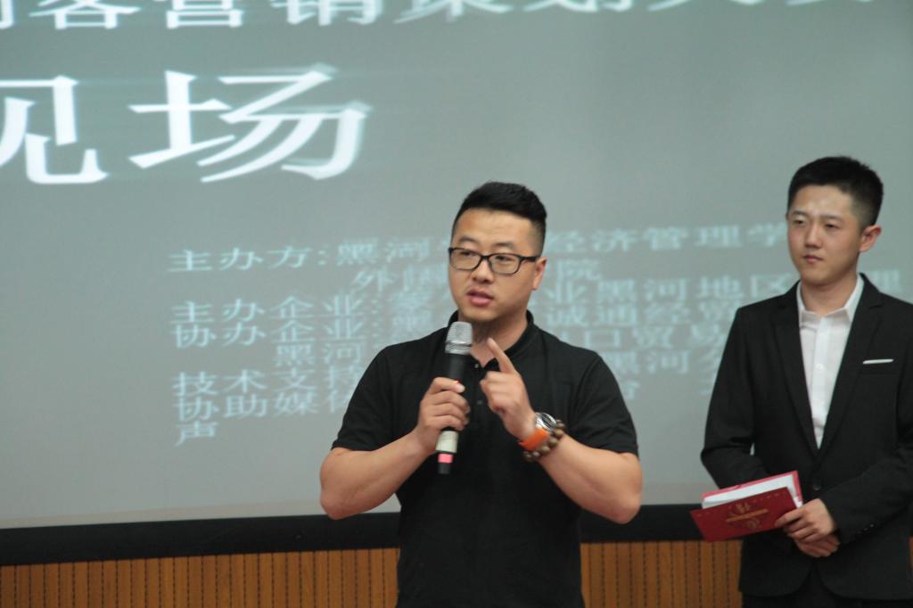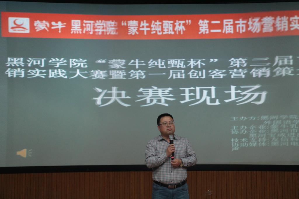 由经济管理学院、英国上市公司365主办,经济管理学院员工会和英国上市公司365员工会承办的英国上市公司365“蒙牛纯甄杯”第二届市场营销实践大赛暨第一届创客营销策划大赛决赛于2017年5月19日晚在俄语楼小剧场圆满落幕。经济管理公司党总支副书记于维刚老师、外国语公司党总支副书记常丽坤老师、蒙牛乳业黑河地区代理商李亮,黑河市宝成进出口贸易有限公司代表吴峤应邀参加。于维刚书记,支常丽坤书记、邹更新老师、企业家代表李亮、吴峤担任大赛评委。