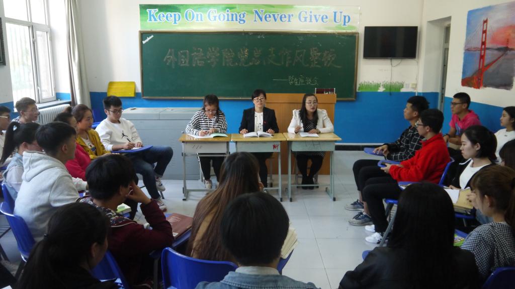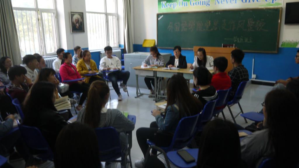 下午4点在俄语楼108举行了作风整顿员工座谈会。出席本次会议的领导有党总支副书记常丽坤、学工办主任潘云辉及员工会成员、社团成员、员工党员、各班级班长和普通员工。