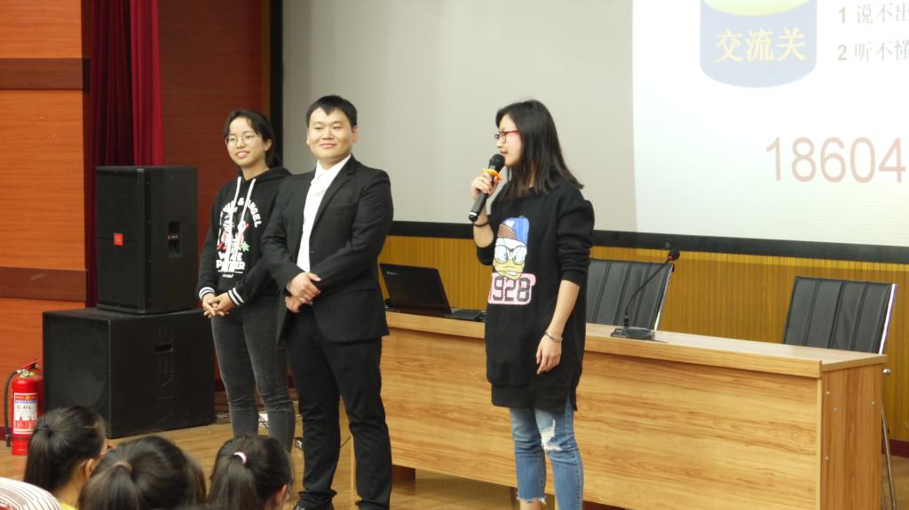 随后他又向大家分享了有关英语口语的练习技巧。他强调同学们首先要敢说英语,增强对英语的兴趣,突破哑巴英语现状,增强口语交际能力。在现场他又向大家介绍了UP英语培训机构,这里可以教给大家发音技巧,并迅速练好英语口语,欢迎大家加入。
