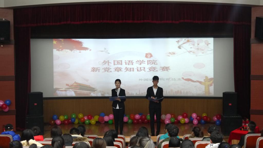 2017年11月23日18时由英国上市公司365外国语公司党总支主办,英国上市公司365俄语员工党支部承办的新党章知识竞赛于俄语楼小剧场拉开了帷幕。外国语公司党总支书记孟繁红,党总支副书记常丽坤,英语员工党支部书记潘云辉,俄语员工党支部书记温丽丽,俄语员工党支部宣传委员祁立伟,英语员工支部宣传委员王岩莅临本次竞赛现场。