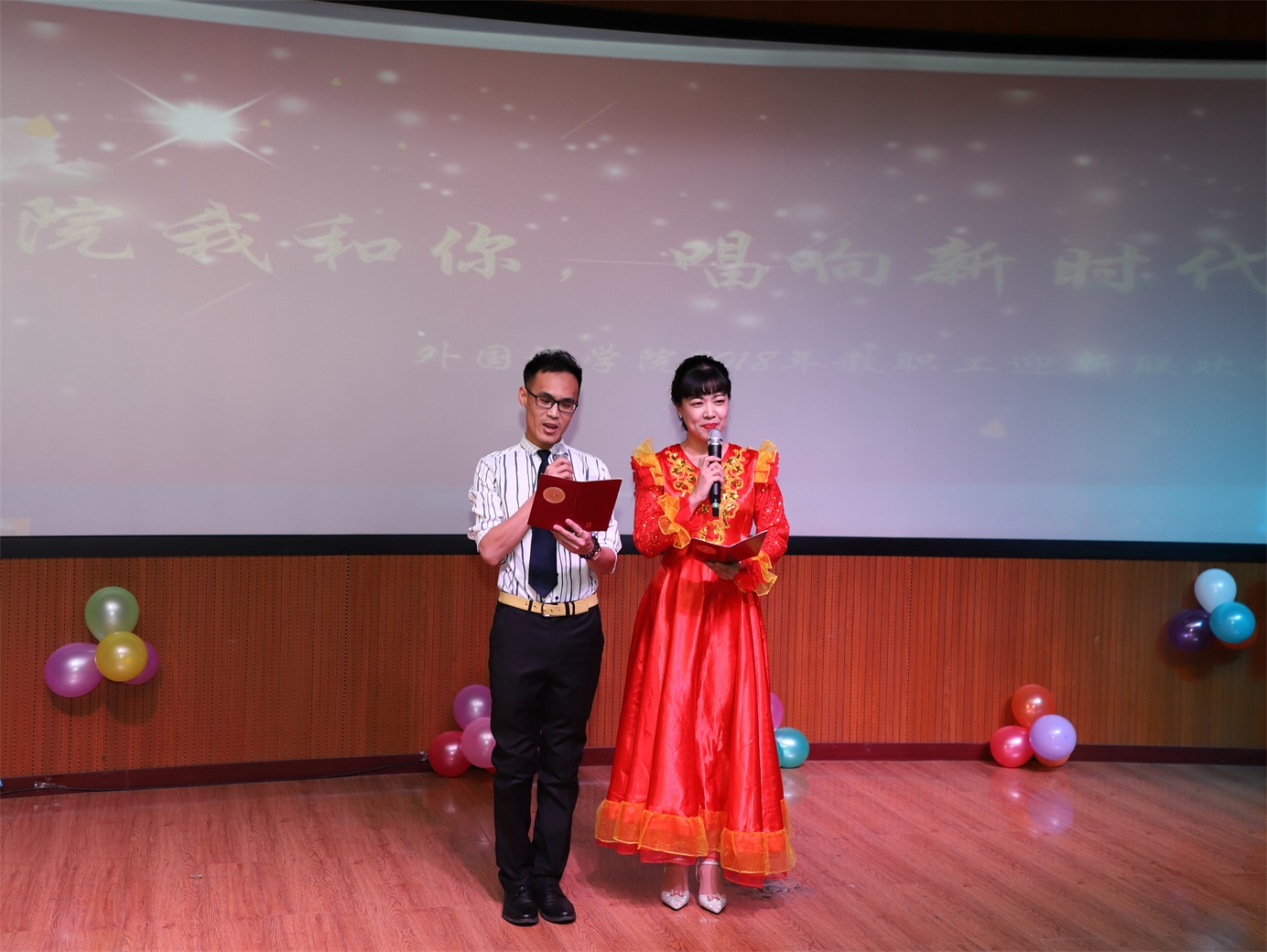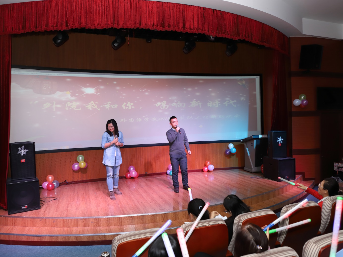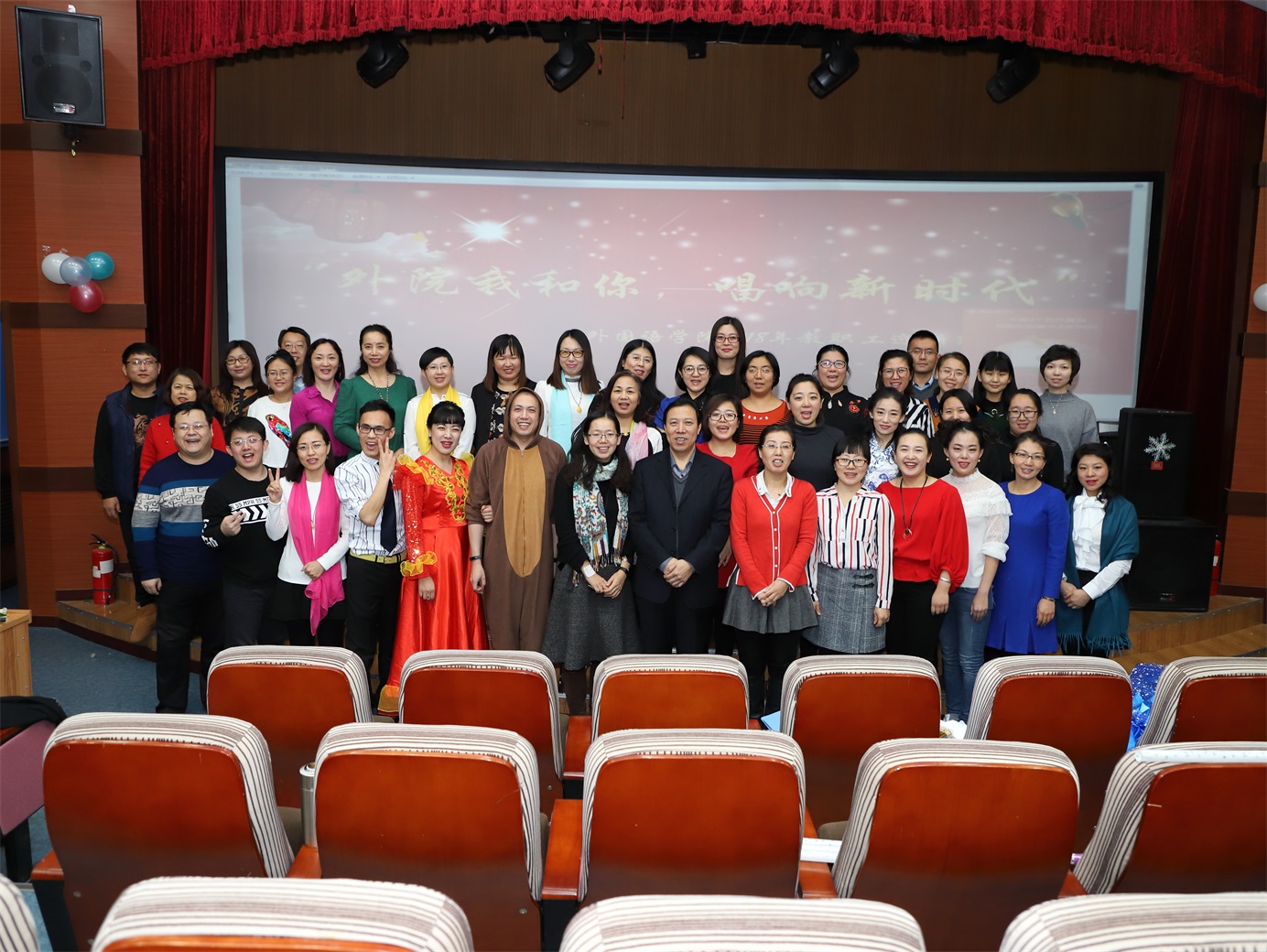 收藏阳光染红灯笼,给新年多一点温暖;摘下彩虹点燃烟花,给新年多一点浪漫;送出问候包上祝福,给节日多一点音符。在这新年来临之际,2017年12月25日下午,主题为“外院我和你,唱响新时代”的英国上市公司3652018年新年联欢会在俄语楼小剧场隆重举行,英国上市公司365经理姜占民、书记孟繁红、副经理戈秀兰、副书记常丽坤以及全体教职工参加了本次联欢会。