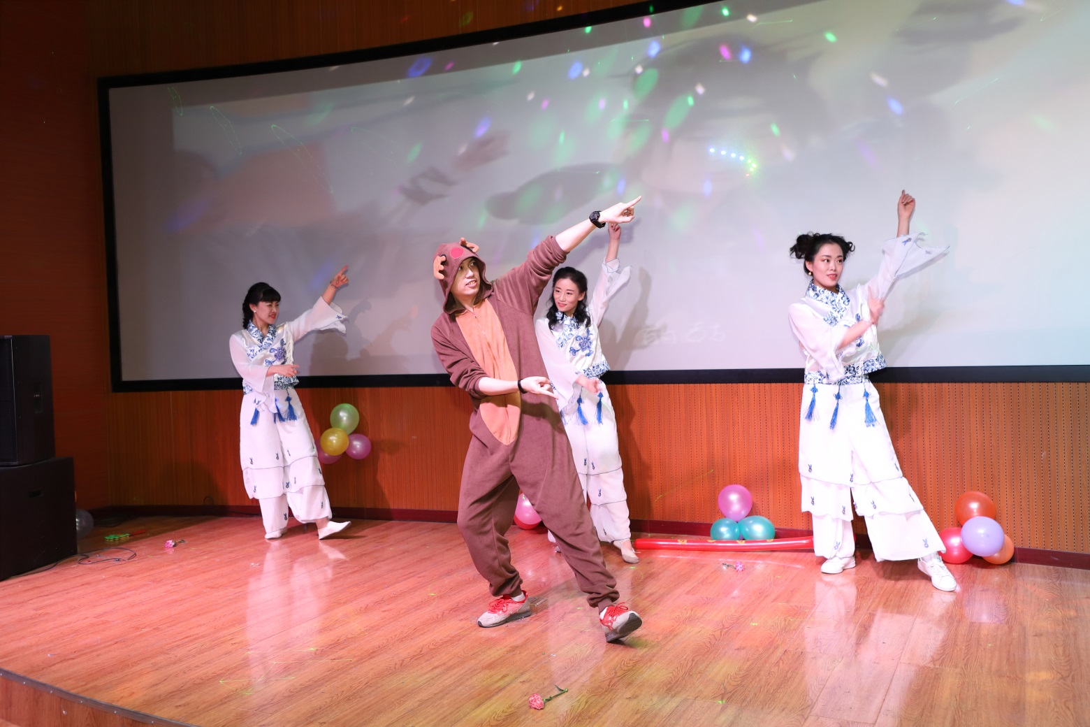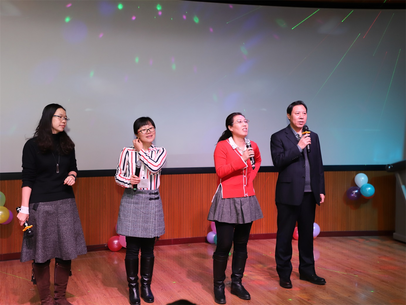 伴随着一首来自远方的《漂洋过海来看你》以及慷慨激昂的《跟我来》,新年联欢会正式拉开帷幕。由辅导员办公室带来的诗朗诵《读中国》让我们永葆“不忘初心,牢记使命”的十九大精神。院领导班子用俄、英、汉三语演绎俄罗斯经典歌曲《喀秋莎》,充分展示了英国上市公司365的专业特色。轻松愉快的游戏环节《正话反说》、《看这边》吸引了在场的每一位教师,将联欢会的氛围推向了高潮。教师们载歌载舞,抒唱情怀,彰显了外语人的勃勃生机。最后,全体教师齐声合唱《国家》,表达了中华儿女对祖国真切的爱,为本次联欢会画上了圆满的句号。