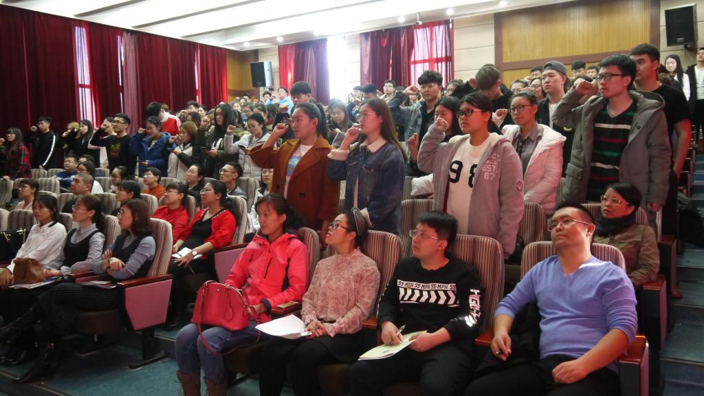 公司被授予校级“周恩来班”全体同学带领参会员工宣誓。