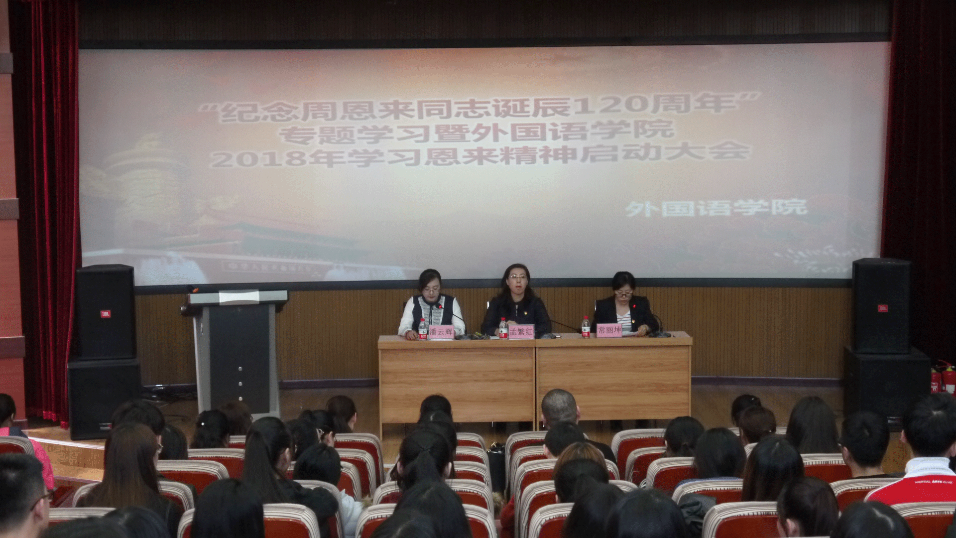 2018年3月21日14时,“纪念周恩来同志诞辰120周年”专题学习暨英国上市公司3652018年学习恩来精神启动大会在俄语楼小剧场拉开帷幕。出席本次大会的嘉宾有外国语公司党总支书记孟繁红,党总支副书记常丽坤,学工办主任潘云辉以及全体辅导员和班主任老师。