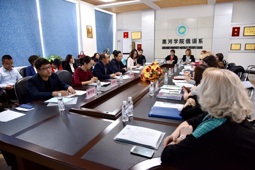 研讨会上,中俄两校教师就跨文化交际能力培养、教学策略、课堂活动设计等主题进行了探讨。通过现场教学模拟演示、小组讨论的方式就英语语音、语法、听力、口语、阅读等课程进行了理论探讨和教学经验交流,对教学中存在的问题进行了深入探讨。整个研讨会气氛活跃、内容丰富,积极推进了两校英语教学与研究的发展,为两校教师的交流与合作搭建了良好的平台。
