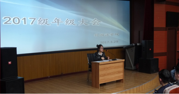 2018年3月29日晚七点,由温丽丽老师主持的2017级年级大会在俄语楼小剧场按时召开,本次大会对3月27日晚在俄语楼小剧场发生的员工打架斗殴事件中的涉事同学提出了严厉的批评教育,并把学院对几名同学的处理意见告知大家,也以此为契机,再次强调了打架斗殴事件的恶性影响,并希望同学们能够引以为戒,学会控制自己的情绪和理性解决问题。随后,温丽丽老师又针对宗教信仰、学籍预警、综合测评、寝室卫生、寝室关系、寝室熬夜、恋爱关系、出国留学和职业规划等系列问题对2017级的员工进行深度交流和沟通,为同学们进行了答疑解惑,并给予同学们中肯的建议,告知大家充分认识到现阶段学习的重要性,为今后的学习和生活道路打下良好的基础。