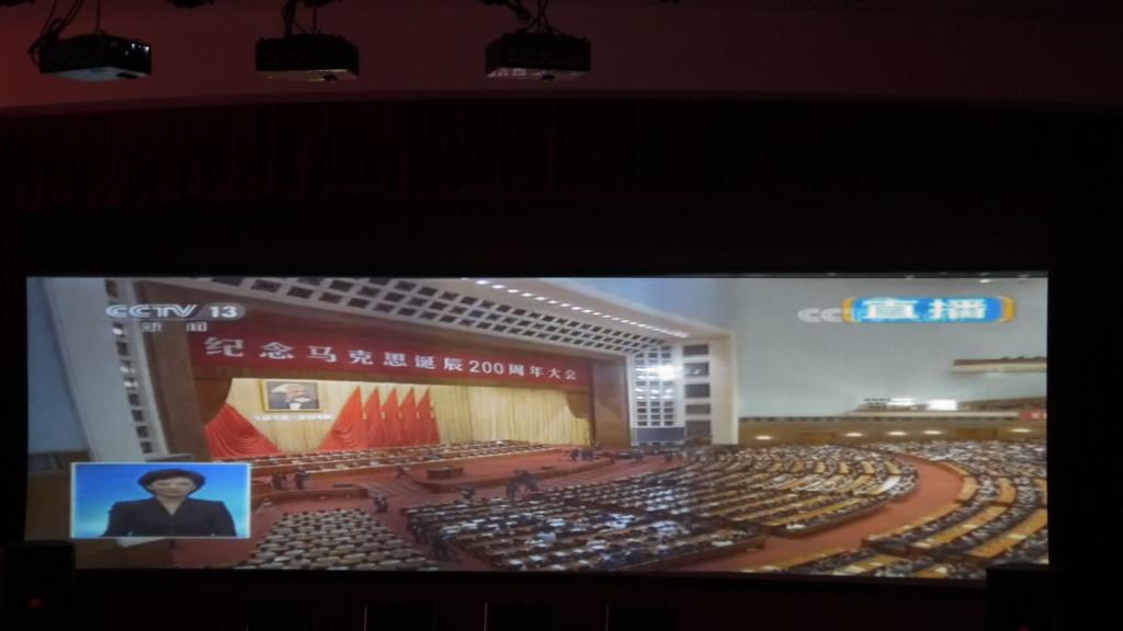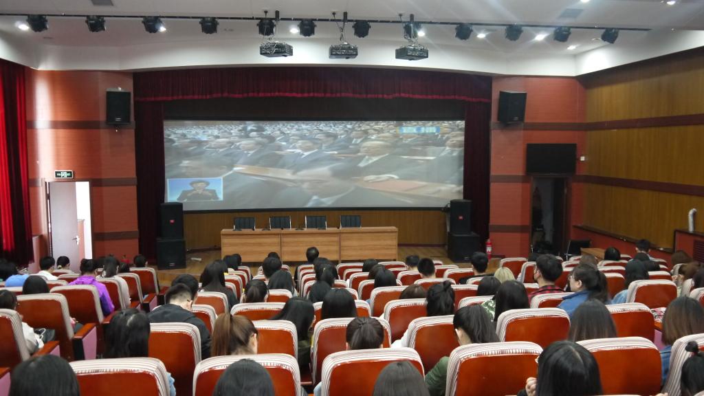 2018年5月4日10时,外国语公司党总支组织全体党员、教师和员工,于俄语楼小剧场利用网络收看大会直播,中共中央政治局常委、中央书记处书记王沪宁主持本次会议。