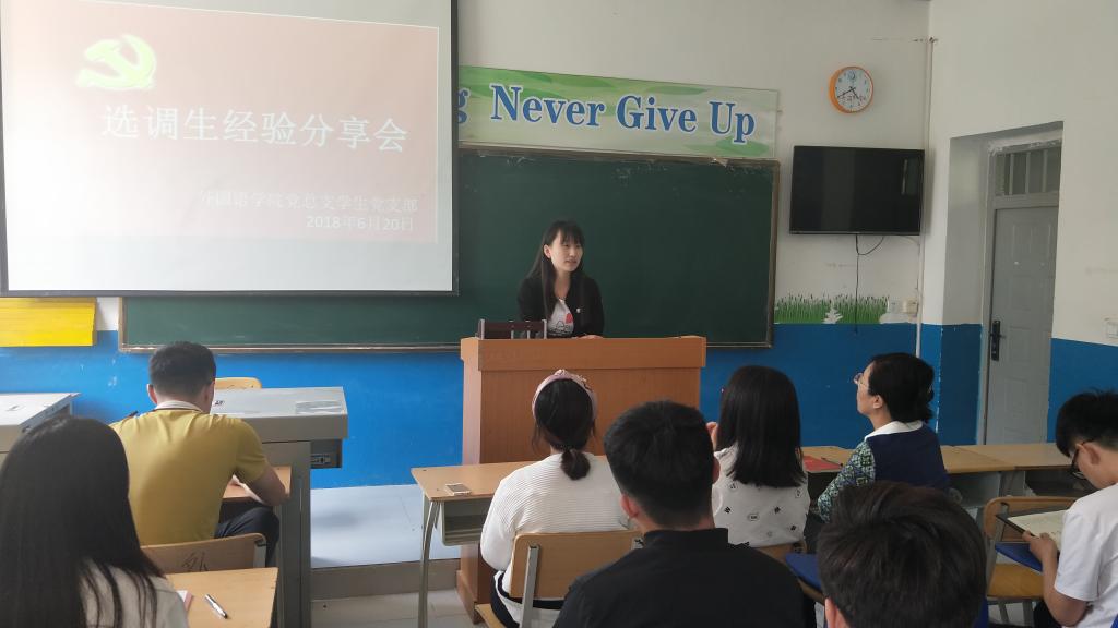 201862012时,公司选调生经验分享会于12:00在俄语楼108召开。出席此次会议的领导及观众有:外国语公司党总支书记孟繁红,党总支副书记常丽坤,学工办主任潘云辉,辅导员温丽丽、郗亚凡及英国上市公司3651516级党员和预备党员。