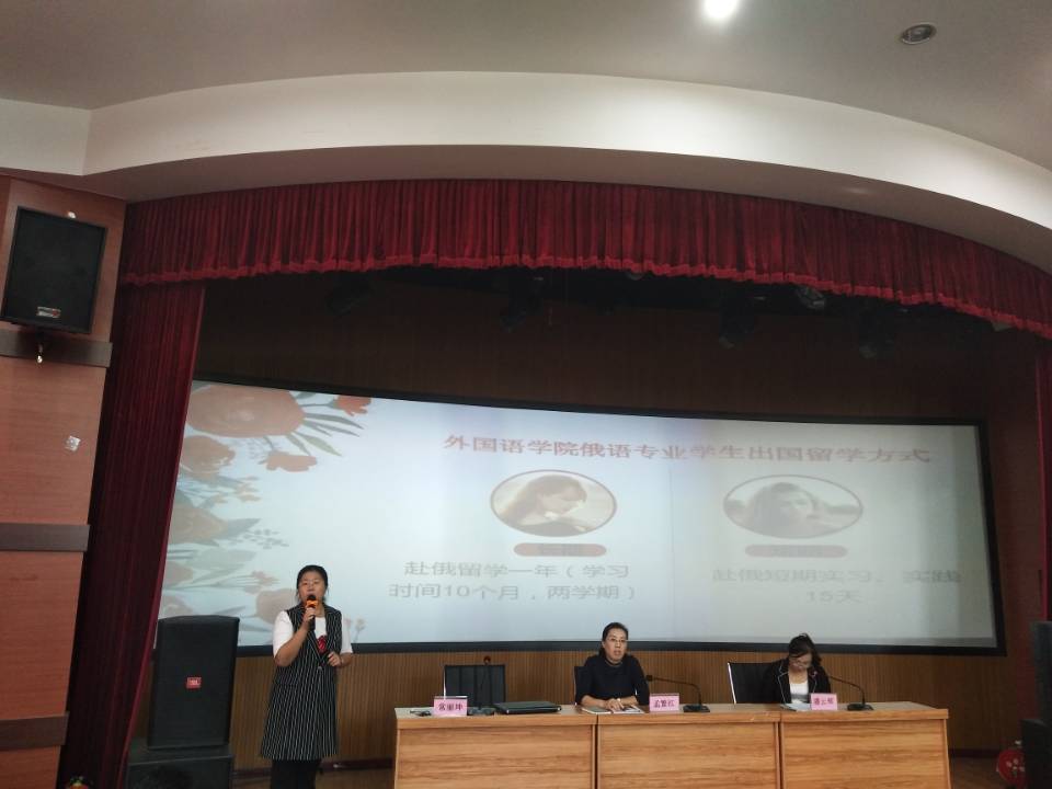 在会议的后半段,潘云辉老师、唐一萌老师和姜丹老师,分别就中美留学、中英留学、中俄留学项目进行讲解,并回答家长提出的问题。