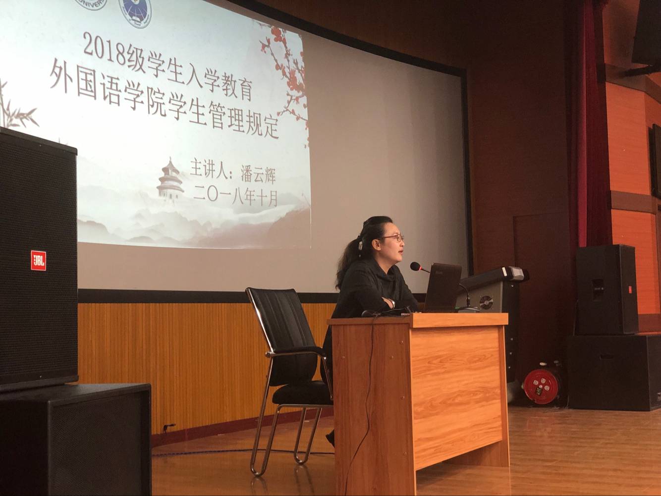 2018年10月24日晚6:00,在2018级同学期中考试结束当晚,为加强员工们对校规校纪和规章制度的深入了解,外国语公司党总支副书记常丽坤在俄语楼小剧场召开“校院员工管理模式及规章制度”相关内容的讲座。俗话说“没有规矩,不成方圆”。为了同学们更好的在老员工活中实现自我价值,学校、学院从学习及生活方面制定了全方面的规章制度。常书记为同学们讲解了请假制度,考试制度,寝室制度,处分制度。在会议结束时向同学们列举了本年度触犯员工管理规定被严肃处理的案例。在讲解中,常书记告诫同学们,要意识到学习、生活过程中都要遵守纪律,要自我约束,要有规则。在遵守纪律的前提下,才会有和谐健康的校园环境,同学们的学习和生活才会更有秩序,更加高效。