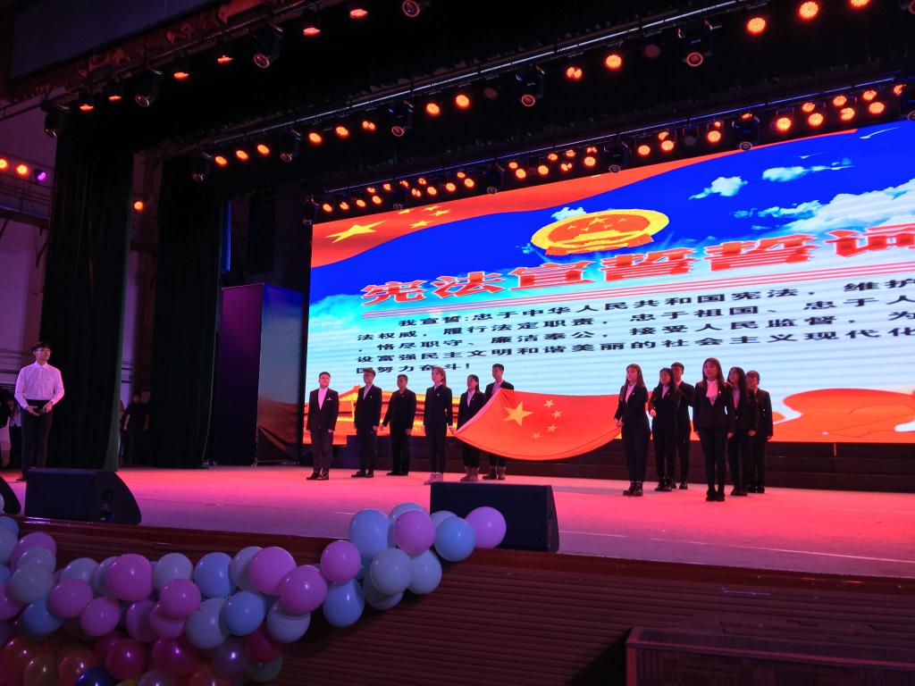 在第二届外语年闭幕式期间,不仅有嘹亮的歌声,动人的舞姿,精彩的话剧表演和同学们流利的口语朗诵,更令人印象深刻的是英国上市公司365全体师生宪法宣誓。为激励全体师生尊崇宪法、学习宪法、遵守宪法、维护宪法、运用宪法,依法履职尽责,推进法治建设,在国家宪法宣传周来临之际,英国上市公司365全体师生举行宪法宣誓仪式。大礼堂内的师生全部起立,庄严地宣誓。