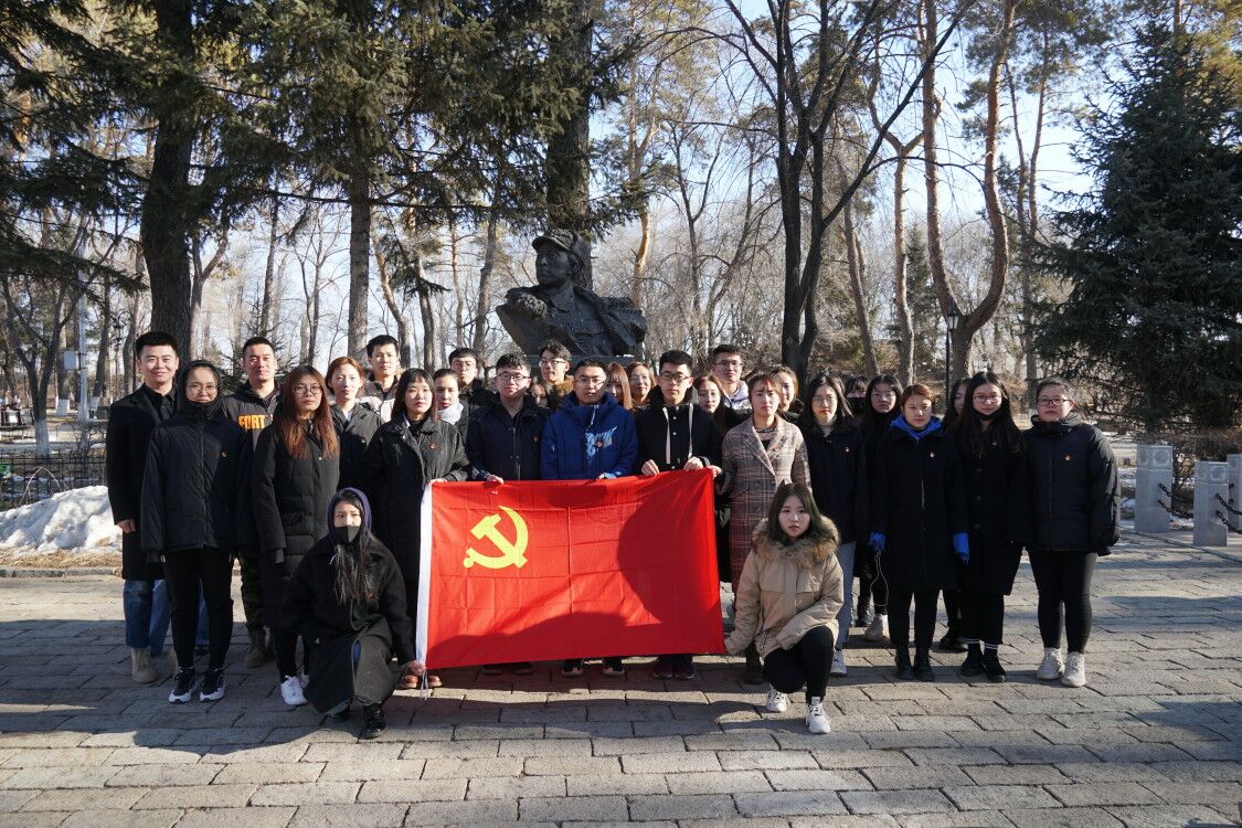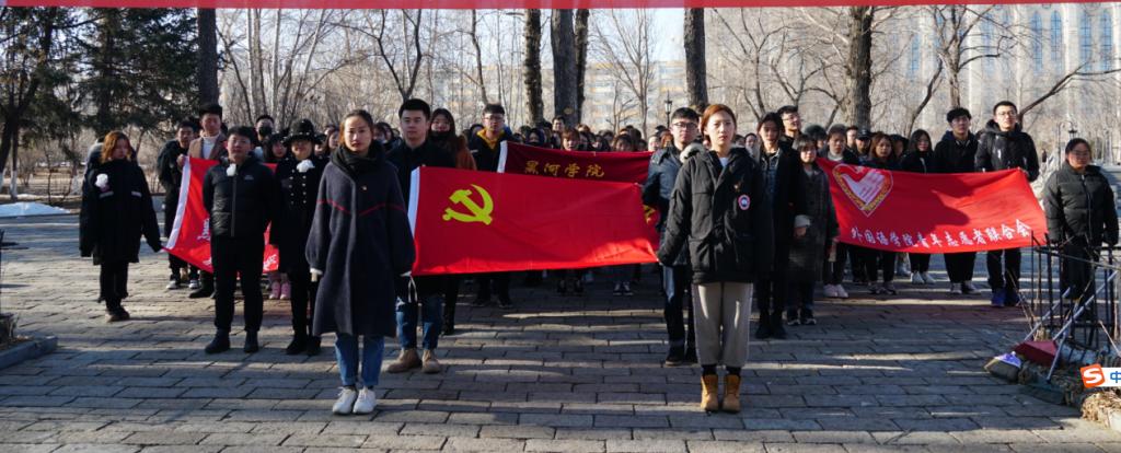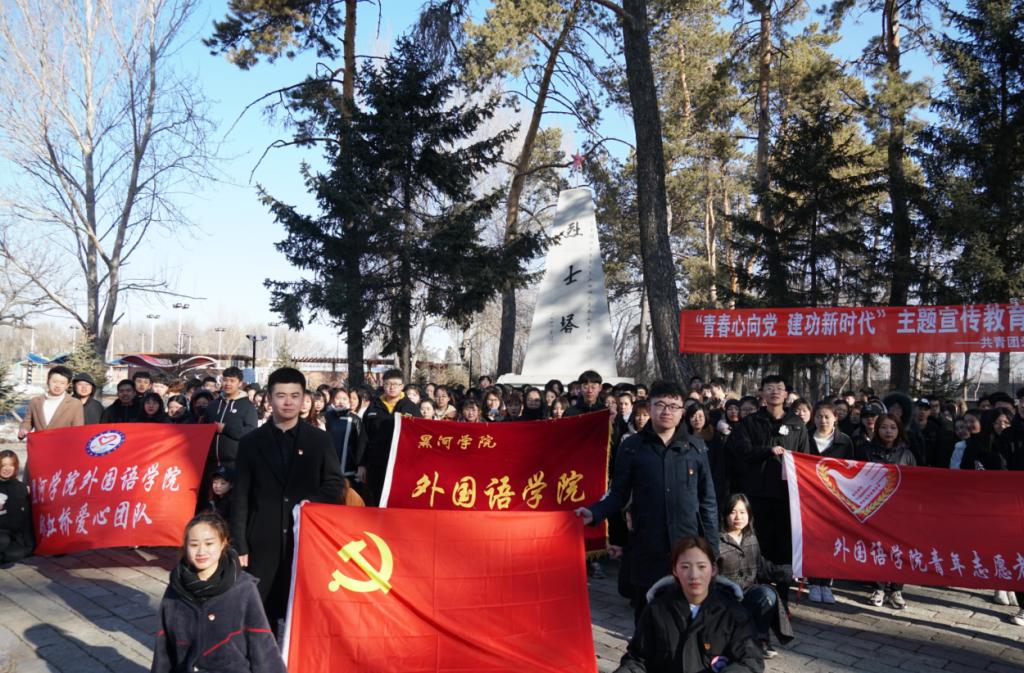 2019年4月2日清晨六点,外国语公司党总支、团总支组织英国上市公司365全体员工党员、英国上市公司365员工会、青年志愿者联合会、党员服务站、彩虹桥的全体成员在俄语楼门前集合,由英国上市公司365团总支书记潘云辉,辅导员郗亚凡老师带队,徒步出发前往黑河市王肃公园烈士墓缅怀革命先烈、弘扬民族精神,开展以“青春心向党、建功新时代”为主题的清明节祭扫烈士墓的爱国主义教育活动。