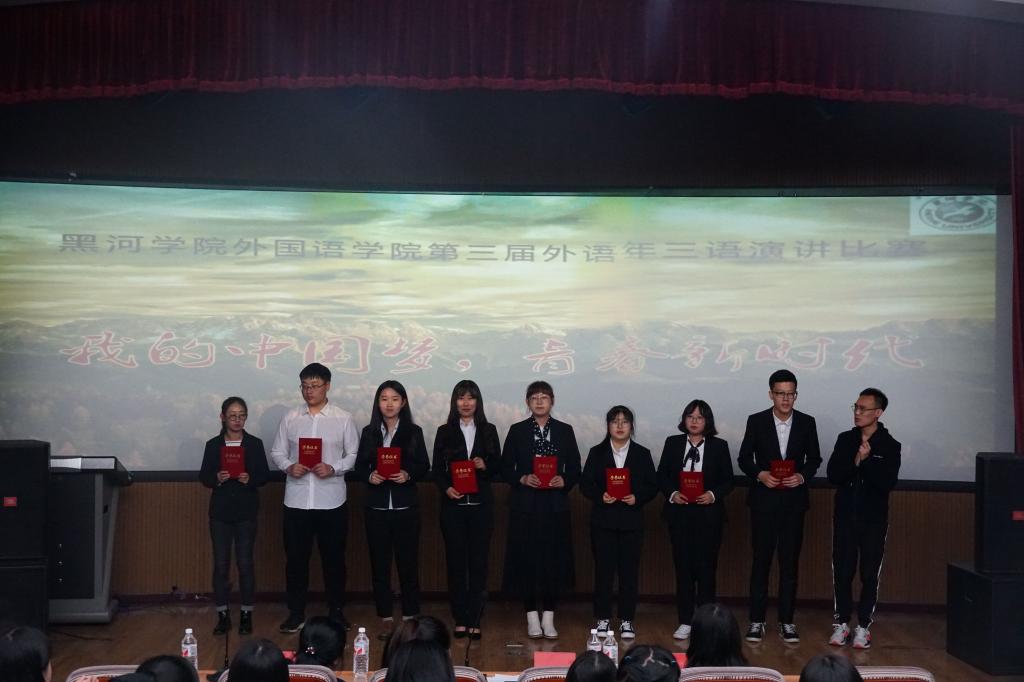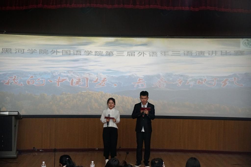 此次比赛共分为三个组,分别是英语、汉语、俄语组。参赛选手分别以《青年兴则国家兴,青年强则国家强》,《中国梦,青春梦》,《我们正春春》,《我的老员工活》等为演讲题目,进行了精彩的三语演讲。同学们的演讲有声有色,每个人都表达出了内心的想法与生活感悟, 做到了“化情为言,以言感人”,整个过程自然流畅,获得了阵阵掌声与喝彩。