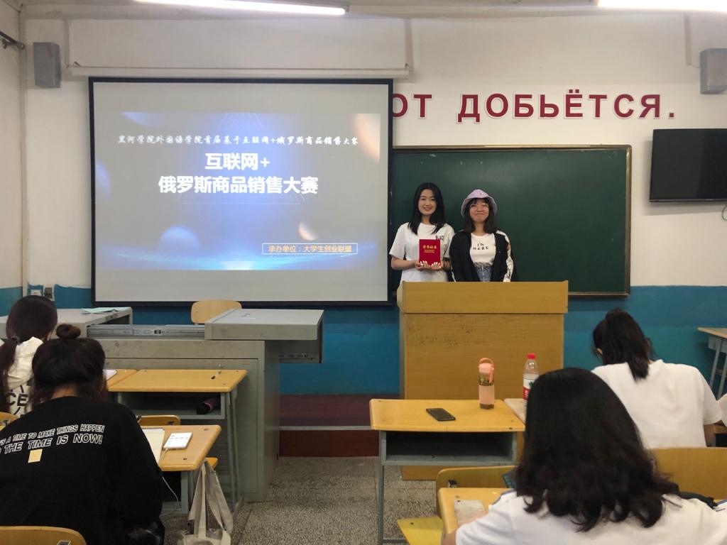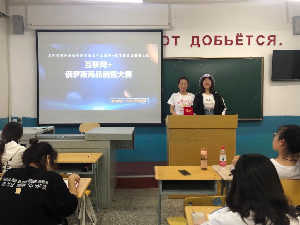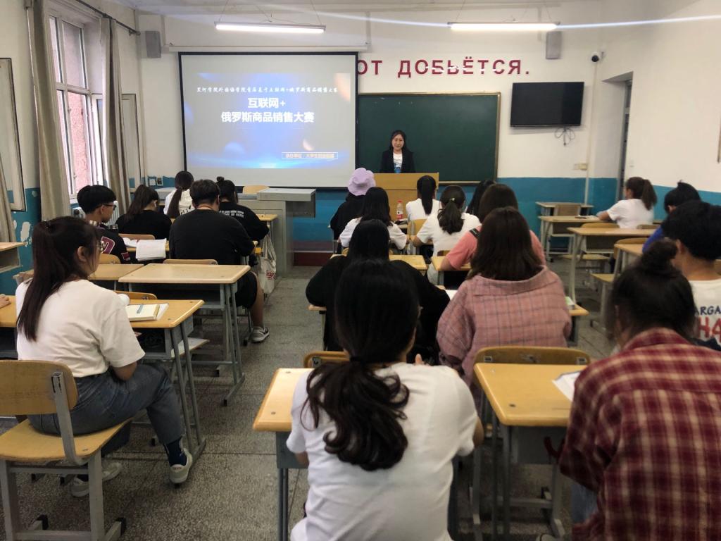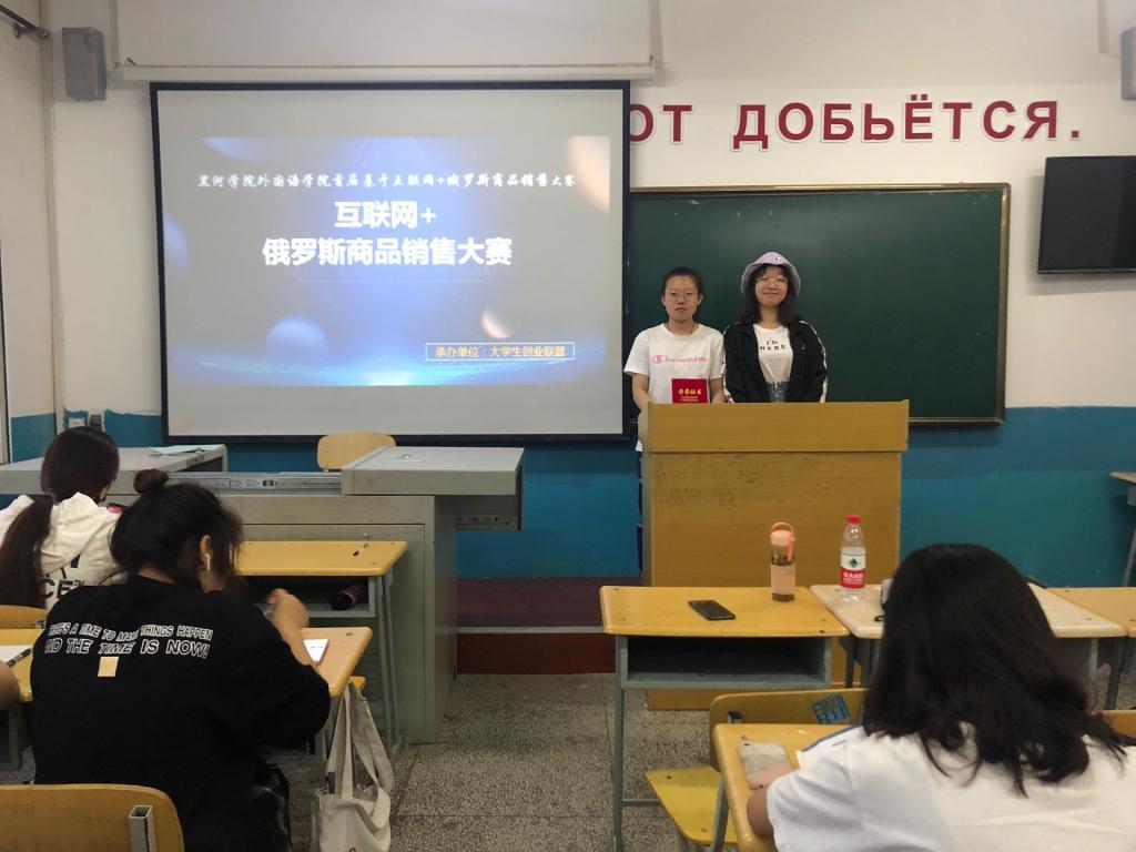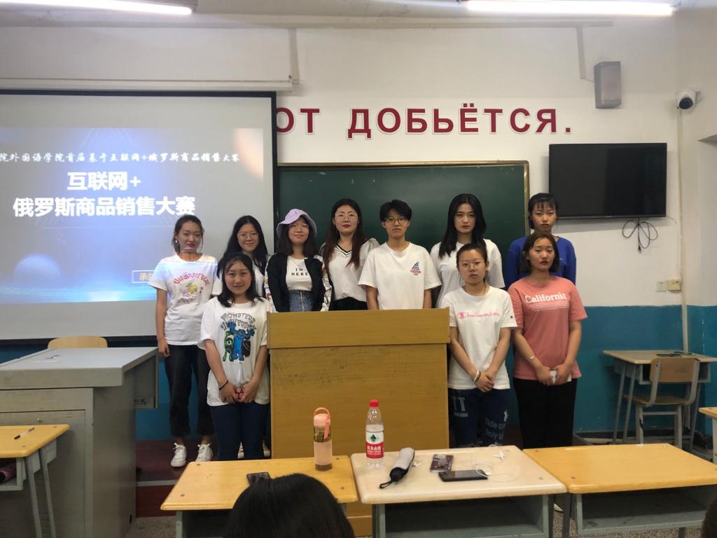 6月11日老员工创业联盟于俄语楼307举办基于“互联网+模式”的俄罗斯商品销售大赛,出席本次比赛的嘉宾有老员工创新创业联盟主席张馨元、彩虹桥爱心团队主席张佳凤,党员工作服务站站长赵英诗。