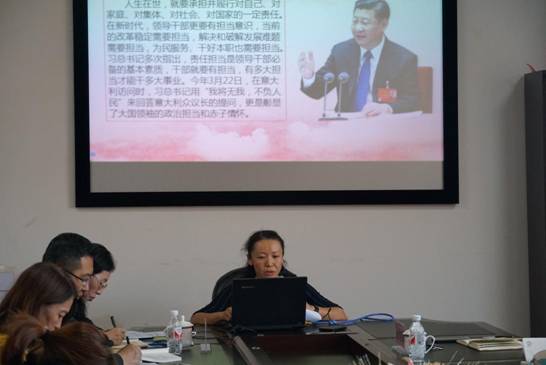 张雪梅书记围绕“充分认识担当精神的思想内涵 ”、“深刻理解担当精神的时代意义”、“如何践行担当精神”、“担当与执行力是相互联系、相辅相成的统一体”等方面,为大家进行讲解。