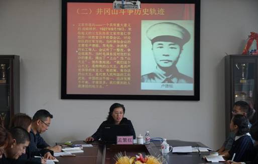 孟繁红经理通过“井冈山斗争及井冈山斗争历史轨迹”、“井冈山精神的科学内涵及体现”、“井冈山精神的时代价值”,“努力在实践中践行井冈山精神”四个方面,结合实际工作为大家进行了讲解。