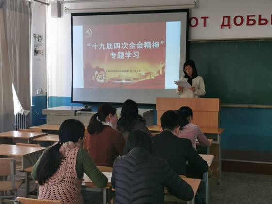 为深入学习贯彻党的十九届四中全会精神,与正在开展的“不忘初心、牢记使命”主题教育紧密结合,外国语公司党总支开展了“党的十九届四中全会精神”专题学习活动。党员师生利用电视、报刊、网络收听收看有关新闻报道等形式展开学习,11月13日以支部为单位,举行了专题学习会,党员师生结合主题教育和学校工作实际展开讨论交流。