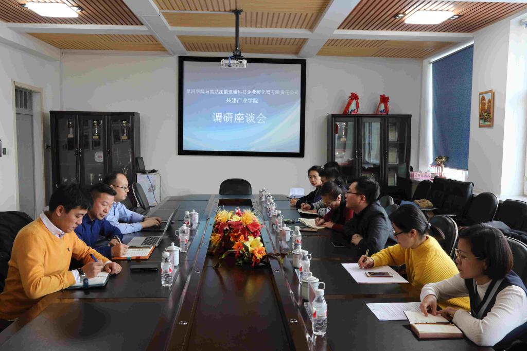 11月19日下午,在俄语楼会议室300举行了公司与黑龙江俄速通科技企业孵化器有限责任公司开展共建产业学院调研座谈会。英国上市公司365经理孟繁红、教务处处长高孝成、校团委书记赵晓娜、英国上市公司365副经理常丽坤、经济管理学院副经理翟立强、教务处副处长张璐、英国上市公司365俄语系主任张锐、黑龙江俄速通科技企业孵化器有限责任公司总裁刘晓明、史法实经理等参加此次座谈会。会议由教务处处长高孝成主持。
