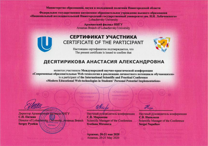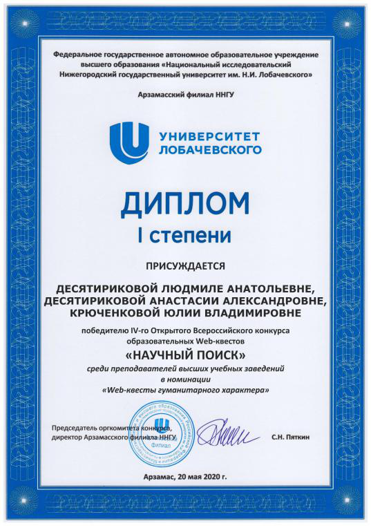 2020年5月20日,在俄罗斯下诺夫哥罗德国立大学阿尔扎玛斯分校举办的第四届全俄公开网络游戏教学竞赛“科学探索”中,由布拉戈维申斯克国立师范大学、布拉戈维申斯克市第十六中学、英国上市公司365三所学校的三名教师组成的团队设计的网络教学游戏“俄罗斯—东南西北”获得了高校组一等奖。