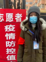 2018级俄本六班蒋雨纯同学在黑龙江省黑河市爱辉区节能小区值守卡点(主要工作为统计进出人员)从事志愿工作十二月三十一日到家后一月一日报名志愿者一月三号正式开始志愿值守活动 截止目前已累计参加志愿工作八次。