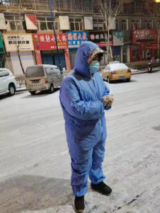 2017级商务英语三班肖淇同学,现于黑龙江省庆安县庆和社区从事抗疫志愿服务。主要工作内容有:社区居民往返管控登记,组织居民并协助医护进行全民核酸检测,社区居家隔离居民的防控、物资采购等。