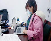 2020级俄本三班邹菀婷同学在黑龙江省齐齐哈尔市拜泉县中医院进行核酸结果录入工作。