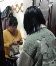 2019级商英二班于越同学,在黑龙江鹤岗市绥滨县兴民社区当青年志愿者,主要工作为进入住宅帮助统计家里具体人数以及联系方式和地址,还在楼下帮助进入小区内的居民进行登记。