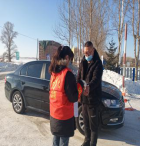2019级商英二班王宇瑶同学在疫情期间于黑龙江省鸡西市虎林市伟光乡吉庆村参加了志愿者活动,主要工作为监察进出车辆扫码和信息登记,以及测量体温等志愿活动。