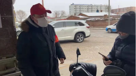 20级俄本六班杨健祺,家住齐齐哈尔市富裕县万祥南区,居家隔离结束后,在小区负责给来往人员扫码登记,监管通行车辆。