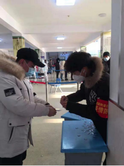 2020级俄本八班王鑫同学在黑龙江省大庆市林甸县宏伟乡太平山村大队实行志愿工作,主要工作积极配合村干部工作,引导群众科学积极应对疫情,全村核酸检测中进行测温及记录工作。
