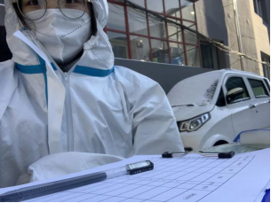 2020级俄本八班范宇欣在黑龙江省鹤岗市东山区沿河北小区主要负责对外地返乡人员进行登记以及居家隔离,按照相应指示定期带隔离人员去对应医院进行核酸检测。