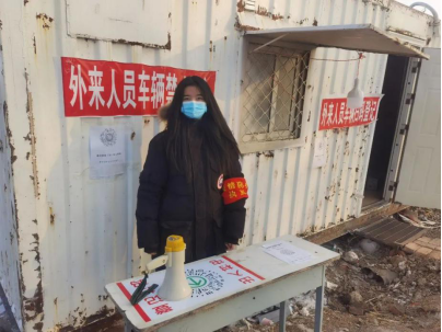 20级俄本五班夏靖宜,于2021年1月24日在黑龙江省齐齐哈尔市梅里斯达斡尔族区雅尔塞镇雅尔塞村社区报名参加志愿者,在通往医院和小区卡口处主要负责来往车辆和行人的出入登记以及秩序工作。