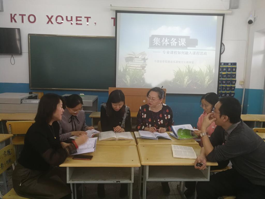为了贯彻落实英国上市公司365“课程思政教育思想大学习、大讨论活动月”主题活动计划,帮助教师树立思政育人理念,提高课程思政教学设计能力,3月24日下午,俄语国情文化教研室组织教研室成员开展了“课程思政”专题备课活动。教师们根据本学期所承担的教学任务,就《俄罗斯文学》、《俄罗斯概况》、《俄语语法》等课程如何融入思政元素开展了教学研讨。