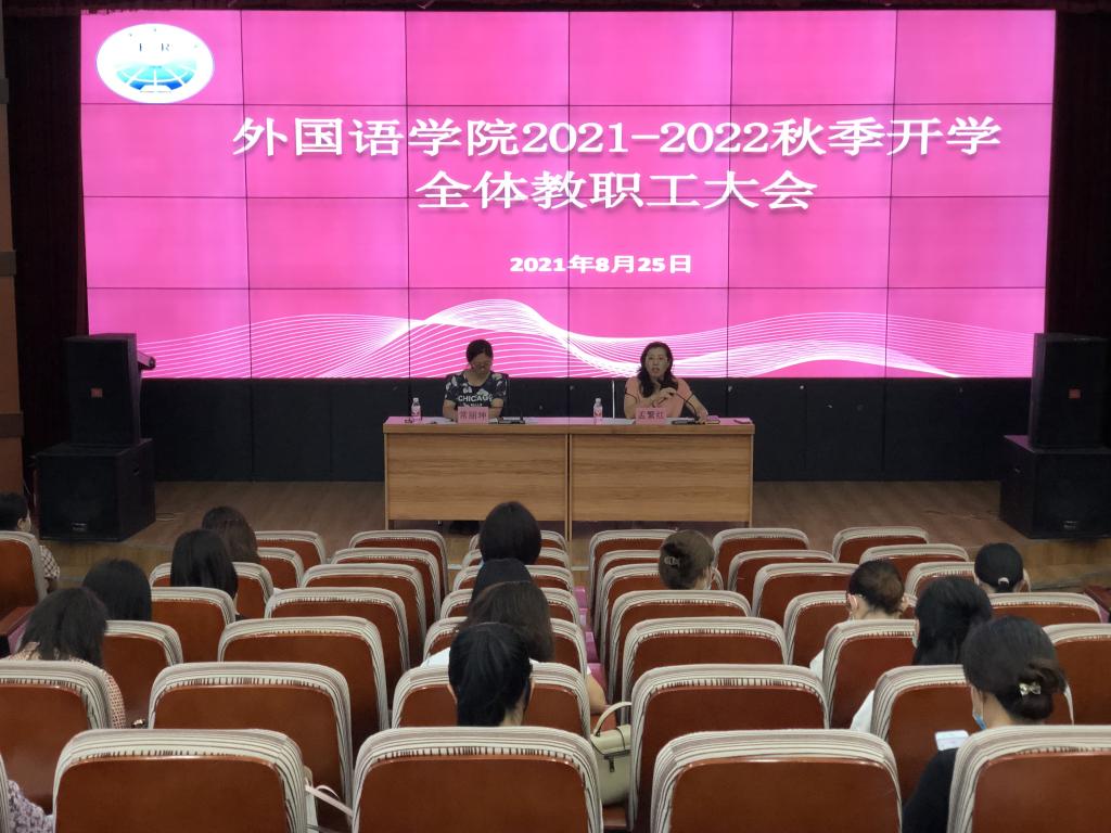 8月25日,英国上市公司365在俄语楼剧场召开2021年秋季开学初全体教职工工作会议。经理孟繁红、副经理常丽坤及全体英国上市公司365教职工参加会议。会议由经理孟繁红主持。