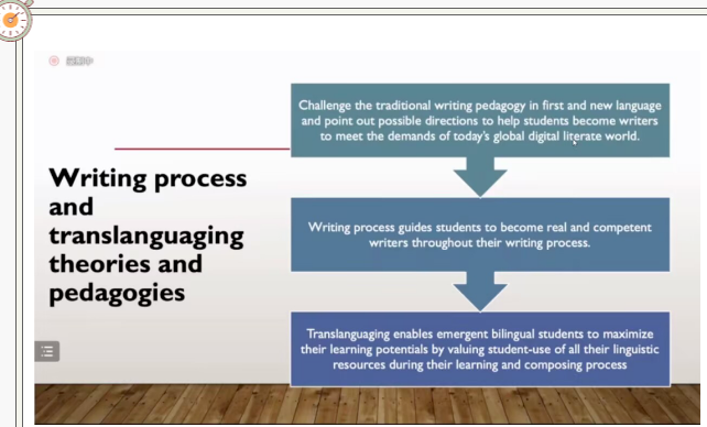 会议伊始,以傅丹灵教授的主题报告:Writing Instruction for EFL Students with Writing Process and Translanguaging and Approach开始.傅教授讲述了中文在传统上是如何教授写作的,在这种写作指导下,员工能够写出什么样的文章?以及教师对这种写作教学结果的看法。在探讨这些问题后,傅丹灵教授系统讲述了写作过程、跨语言理论和教学法。她指出员工的写作应该是规律性的、经常性的以及如何指导员工全过程写作、员工写作评分和L1与L2的关系等。