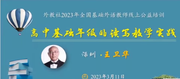 随后,王卫华老师进行了《高中基础年级的读写教学实践》主题微讲座,主要根据新高考英语测评的最新动态,在读后续写新题型背景下,提出高中基础年级读写结合教学的个人主张,借助案例,重点探讨高一教学中,如何有效开展由浅入深、阶段侧重、梯度分明的读写结合教学实践。