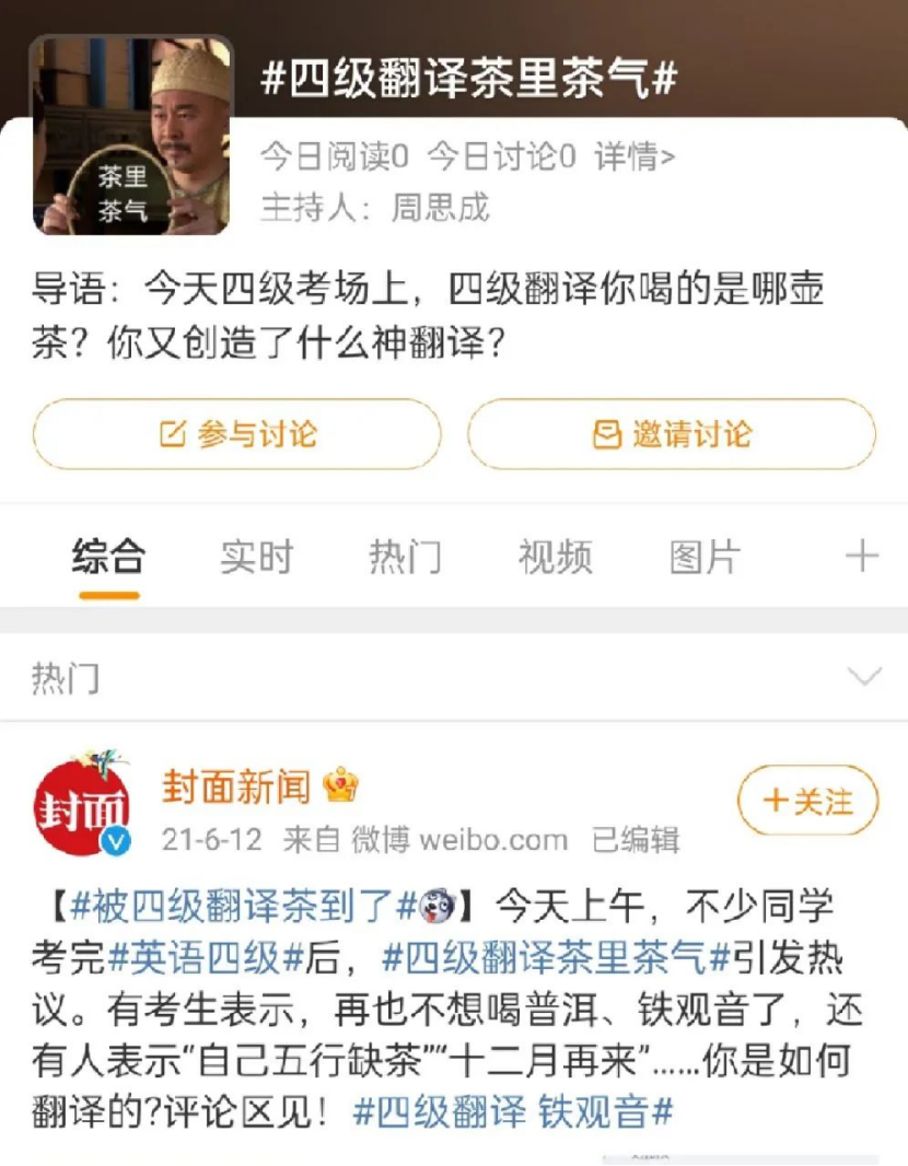 了解茶文化便是在了解世界史。所以,国家也格外重视茶文化知识的科普与外宣,比如在2020年9月和2021年6月,“茶”便连续2次登上了四六级考试翻译题的舞台。