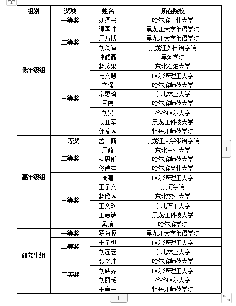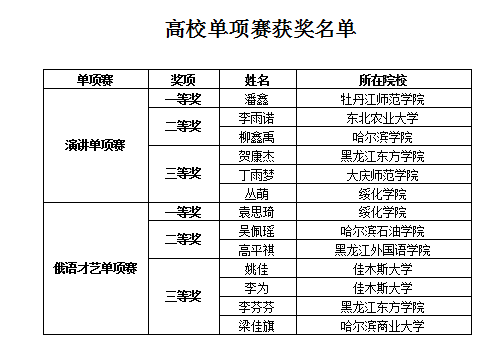 第四届黑龙江省高校俄语大赛获奖名单