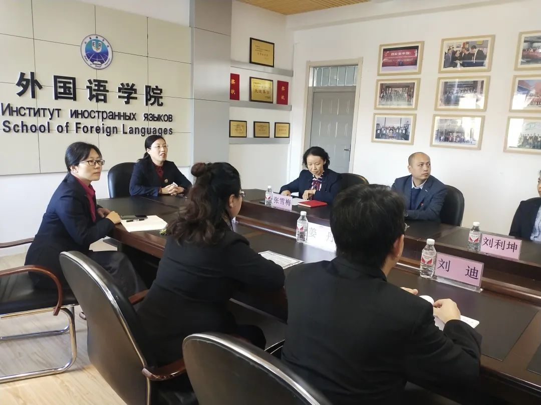 见面会上,党总支副书记张凯针对员工管理相关工作进行了讲解。 俄语系主任姜丹就中俄合作办学、出国留学项目做详细的讲解和答疑。